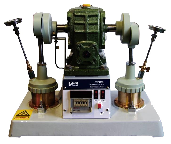 SYP4106-I润滑脂剪切试验机按照GB/T269-91《润滑脂和石油脂锥入度测定法》试验标准的要求在规定的试验条件下,经机械剪切工作后的稠度变化来判断润滑脂的机械安定性,以延长工作锥入度或剪切安定性表示,单位为0.1mm。